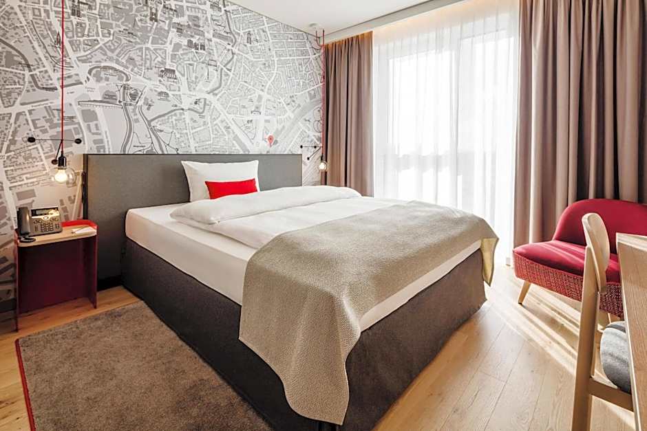This soundproofed room with modern color concept features coffee and tea facilities, a desk, a telephone with voicemail, a flat-screen TV, a radio, free WiFi, a safe, fridge and a modern bathroom.